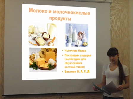Ученик 6. Творог это высококонцентрированный продукт, требующий для усвоения большой работы всех органов пищеварения, поэтому рекомендуют его употреблять 2-3 раза в неделю. Он хорошо сочетается с мёдом, любыми фруктами, ягодами, орехами. Творог это вечерняя еда. Сыр как и творог это белок высокой концентрации. 90 г сыра снабжает организм необходимым кальцием, как 3 л молока. Сыр сочетается с огурцами, салатом, капустой, овощами, а бутерброды рекомендуют делать с ним из хлеба, испечённого из муки грубого помола. Лучше всего употреблять молодые сыры. Рациональное питание имеет исключительное значение для нормального физического и умственного развития. Ученик 7. Диетологи считают, что молоко имеет большое значение в питании современного человека, поэтому они рекомендуют: 1. Молоко отдельная еда, а не дополнение к ней. Оно сочетается со сладкими фруктами, ягодами, крахмалистыми овощами. Можно разводить молоко фруктовыми соками (некислыми) и морковным соком. 2. После кислых фруктов и помидоров молоко можно употреблять не менее чем через полчаса (особенно соблюдать при питании детей). 3. Рекомендуется пить молоко небольшими глотками, подольше задерживая его во рту. 4. При кипячении порошкового молока на дно кастрюли положить нарезанные морковь и свеклу (2-3 см слоем). Молоко станет вкуснее и будет приносить пользу. 5. Так как всякое молоко очень благоприятная среда для бактерий, то врачи советуют после употребления сырого молока съесть небольшой кусочек какого-нибудь сладкого фрукта.